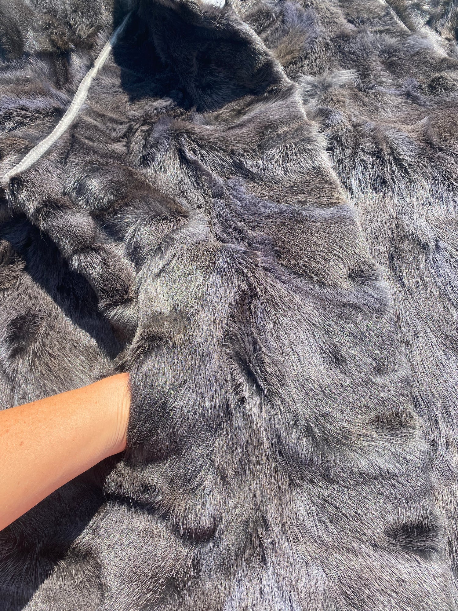 Description: Discover a one-of-a-kind vintage treasure with this amazing grey goat fur coat, which transforms into a stunning blue-black shade in certain lighting. This unique coat from the 1960s-1980s is a true statement piece, combining luxurious materials and exceptional craftsmanship.
