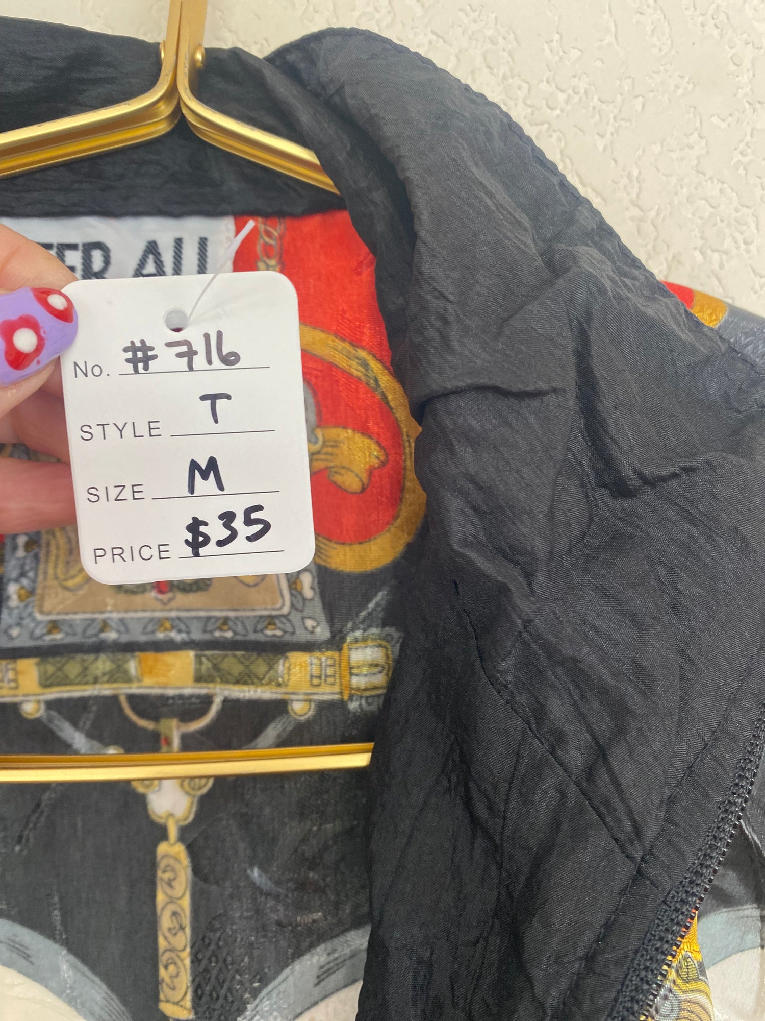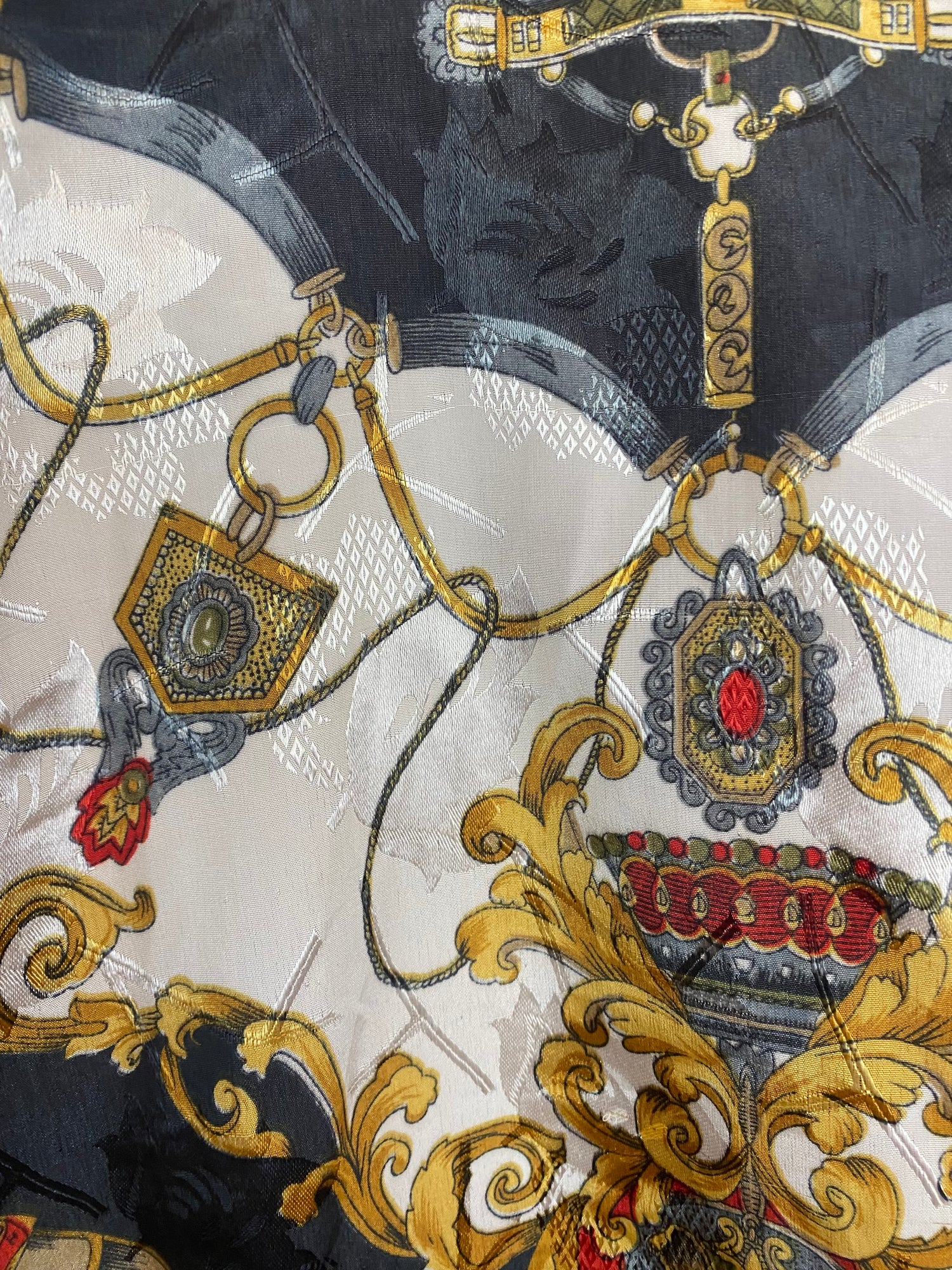Channel luxe vibes with our vintage jacket, flaunting a Versace-inspired design and chic elbow-length sleeves. It's the perfect blend of opulence and retro style, making any outfit instantly more glamorous.