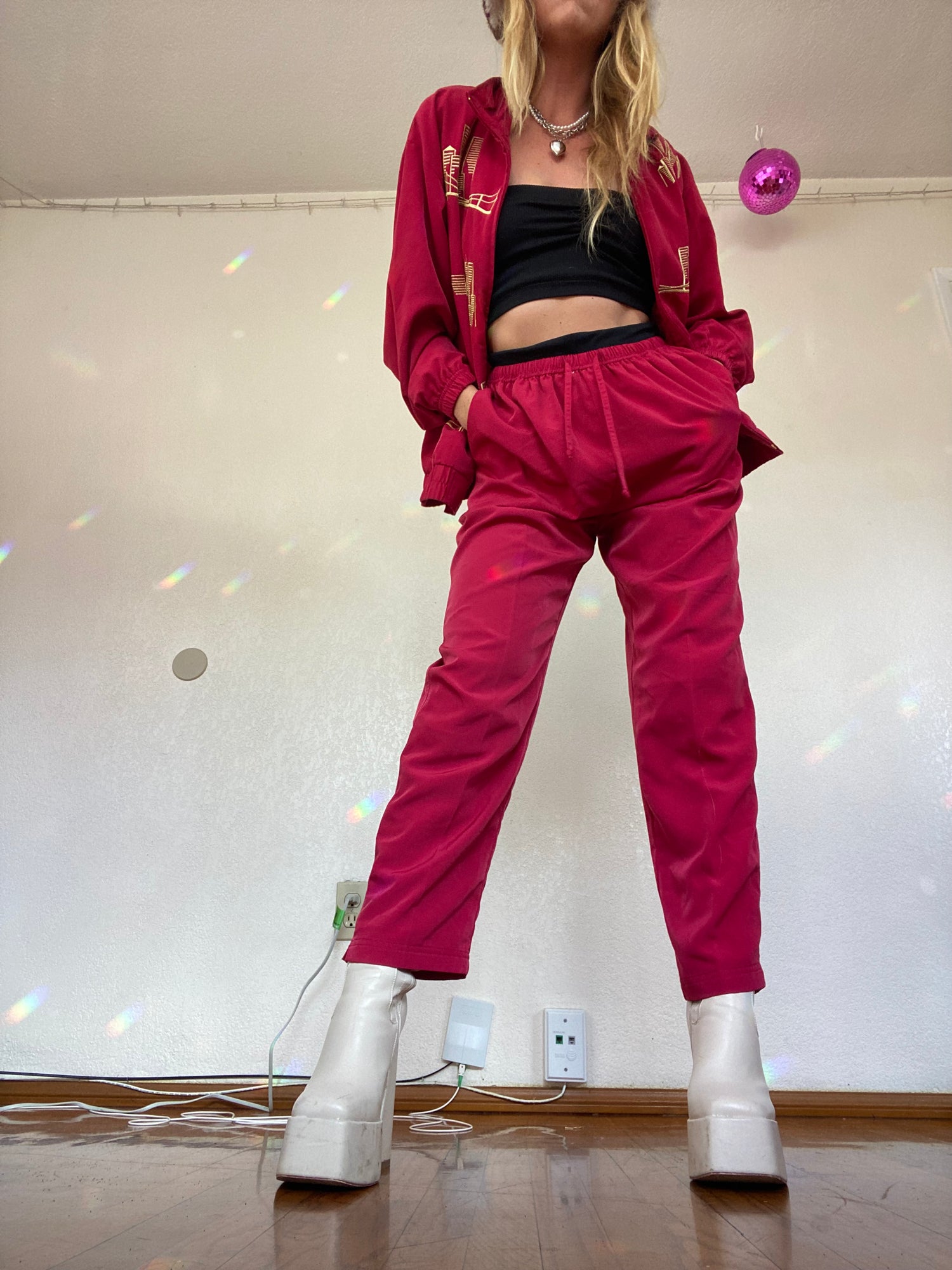 Ready to turn heads? This vintage red track outfit brings the perfect blend of retro vibes and street-style swagger to your wardrobe.